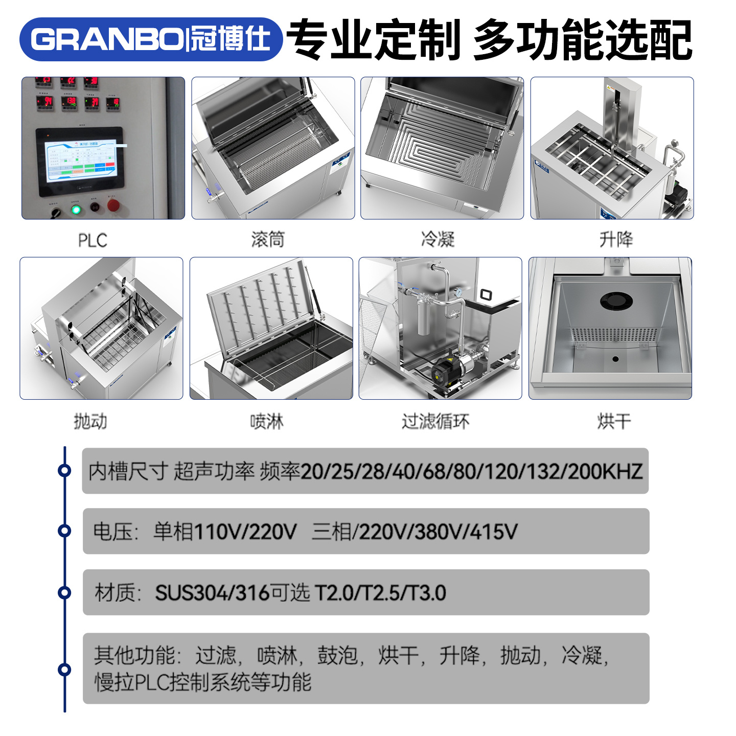 - 功能:清洗、降噪、脈沖、脫氣、掃頻