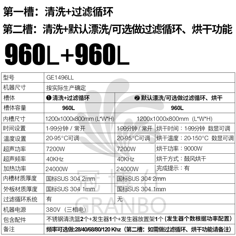 冠博仕GE1496LL|雙槽超聲波清洗機|960L/7200W支持定制