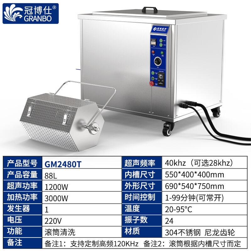 冠博仕GM2480T滾筒式超聲波清洗機 | 88L/1200W | 工業級除油除銹設備可清洗三通配件、銅鋁合金小配件、不銹鋼沖壓